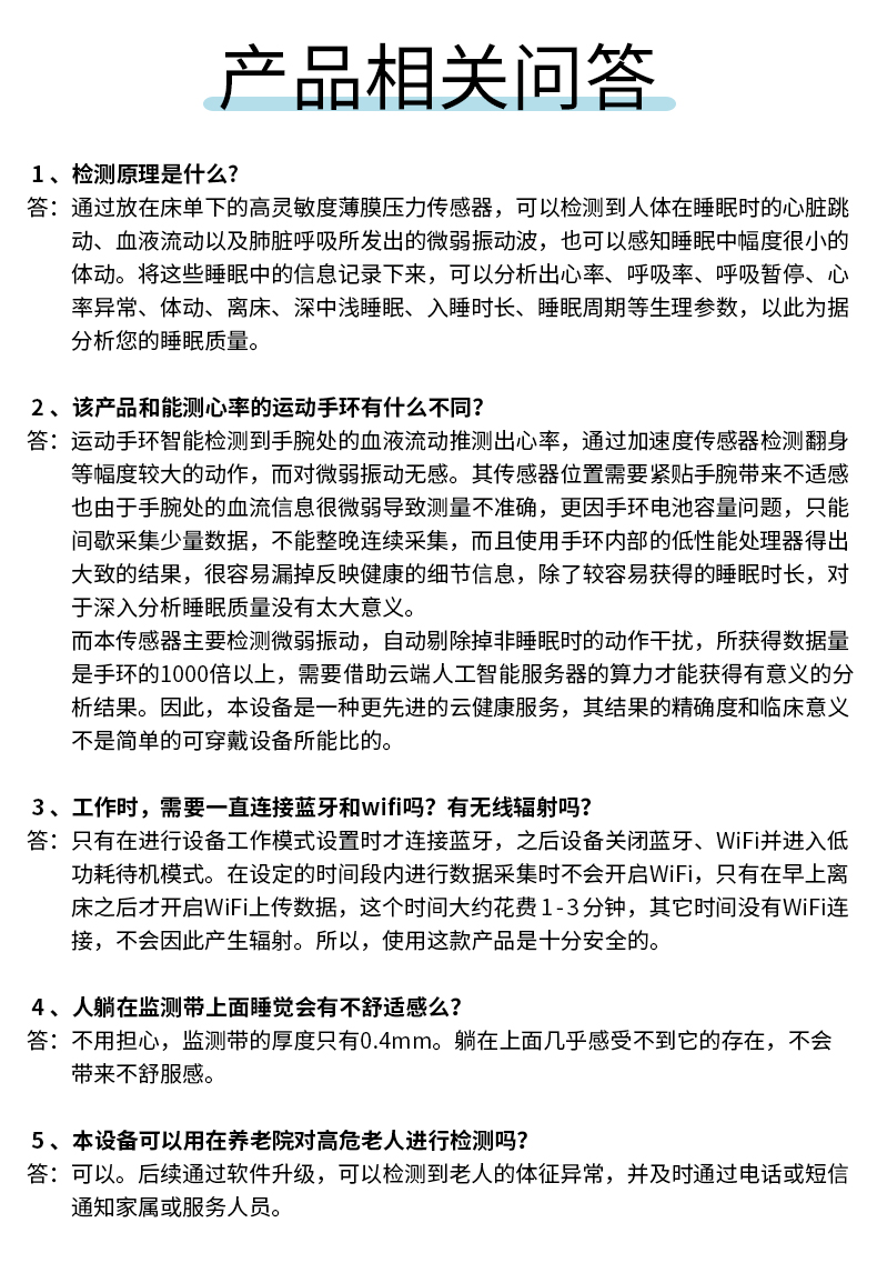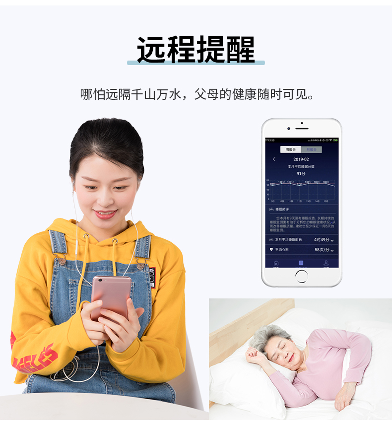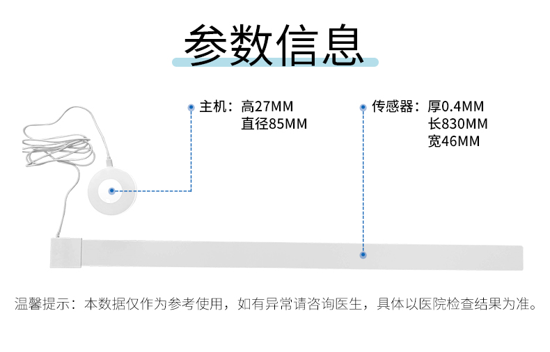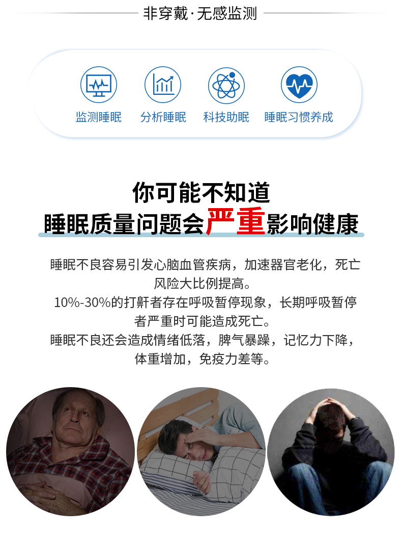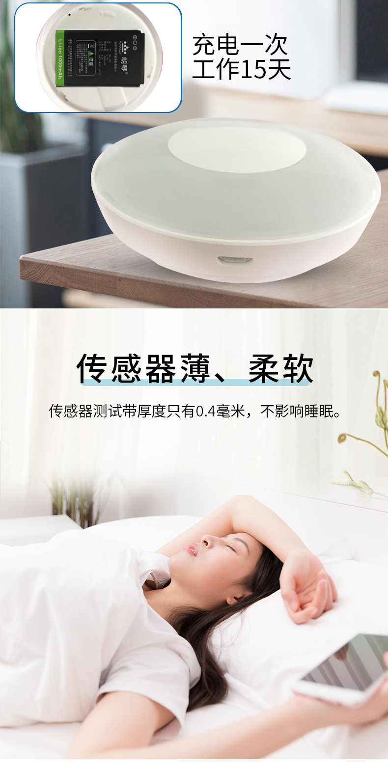 監測睡眠過程中的心率、呼吸率、體動等數據,離床監測器,非穿戴,舒適睡眠無感監測