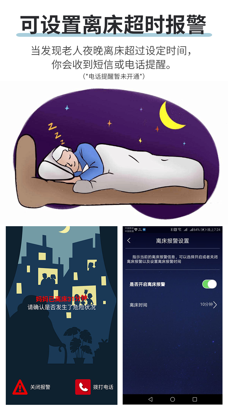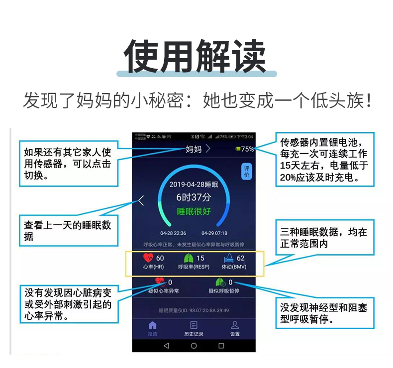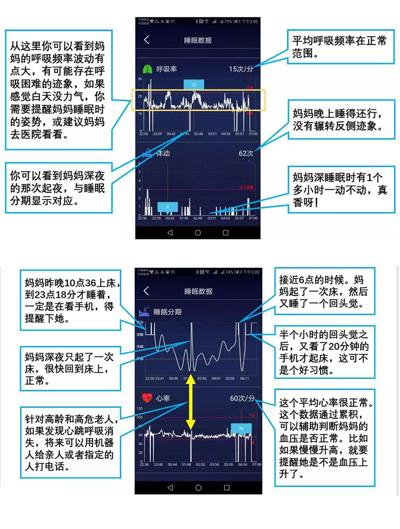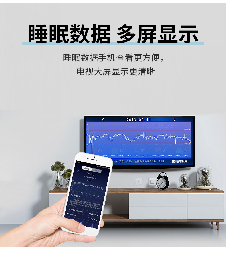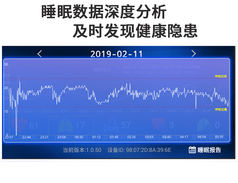 監測睡眠過程中的心率、呼吸率、體動等數據,離床監測器,非穿戴,舒適睡眠無感監測