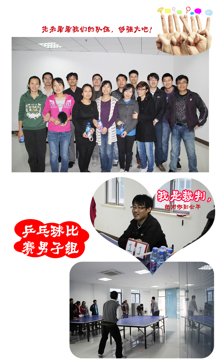 為活躍公司員工的業余文化生活,增強員工體質,公司于10月26號舉辦一場乒乓球比賽。全體員工對此次比賽表現出極大的熱情,踴躍報名,積極參與。
