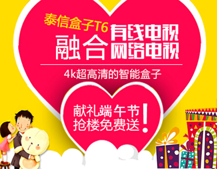 端午小長假即將到來,適逢父親節,這讓很多回家過節的人頭疼不已,買什么禮物呢?平時因為工作繁忙無法經常陪伴父母的你是否有想過在這個特殊的節日為爸爸送上一份特殊而實用的小禮物呢?泰信盒子專為看電視而生,二十年堅持方便老百姓看電視的理想不動搖,努力創新,推出真正適合父母看電視的盒子。昨日泰信盒子特攜手智能電視網、沙發管家、奇珀網、高清時代共同推出“泰信盒子獻禮父親節、端午節,搶樓免費送”活動,抓緊搶一臺,作為雙節的禮物吧!