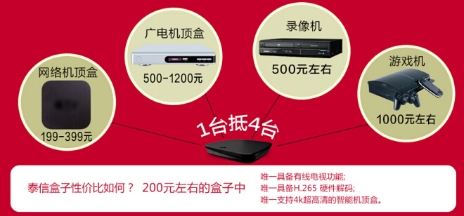 在大同小異的網(wǎng)絡(luò)機(jī)頂盒中,泰信盒子的有線直播功能優(yōu)勢(shì)凸顯,作為第四代機(jī)頂盒的代表,既能當(dāng)廣電機(jī)頂盒用,又能當(dāng)網(wǎng)絡(luò)機(jī)頂盒用,沒有變磚頭的風(fēng)險(xiǎn),是方便老百姓看電視的首選。面對(duì)單純的網(wǎng)絡(luò)機(jī)頂盒或廣電機(jī)頂盒,您有換掉的沖動(dòng)吧?
