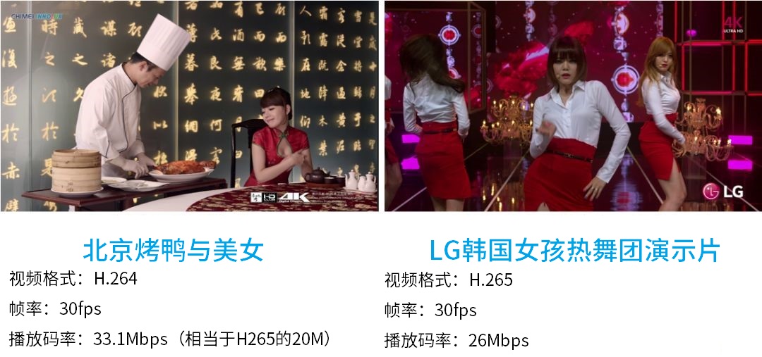 這是我們在電視賣場經(jīng)常看到的兩個4K超高清演示片及參數(shù)。這樣的碼流速度即使你家中安裝了千兆帶寬也難以順暢地傳輸,只能下載到本地用U盤播放。