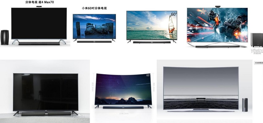 平板電視的聲音差是一個公認的難題。2014年互聯網公司進入電視市場之后,借鑒國外流行的能改善電視聲音的長條SoundBar設計,將電視主板放進去,用來改善電視的聲音。“正式”的帶有音箱的分體電視誕生了。