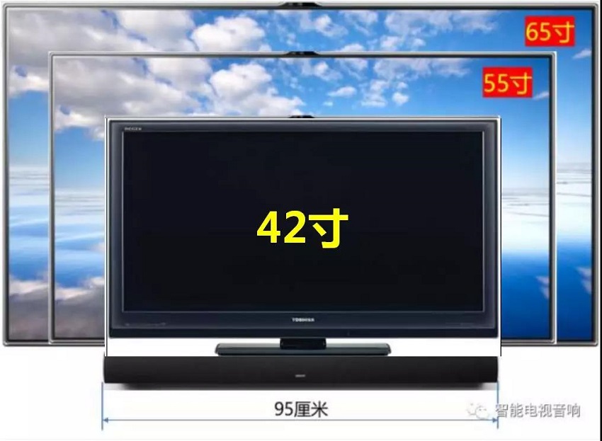 長條電視音響起源于歐美,當時的電視尺寸為40-42寸,加上邊框大約在85-95厘米,再加上受物流長度的限制,大家默認電視音響的長度為0.85-1米。但現在55寸超高清電視的長度為1.3米,65寸更大,再與不到1米的長條音箱匹配,不但不協調,也完全沒有了超高清的立體聲效果,還不協調。