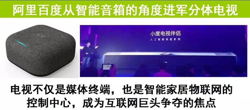 在機頂盒上加個音箱就是分體電視主機,可實現智能音箱與智能電視的融合,電視主機市場進入門檻降低,屆時傳統的音響廠家也可能加入戰局。如果成為趨勢運營商盒子也會朝分體電視方向升級電視機廠家擔心將被打回電視顯示器的原形,夢斷電視運營商轉型之路。
