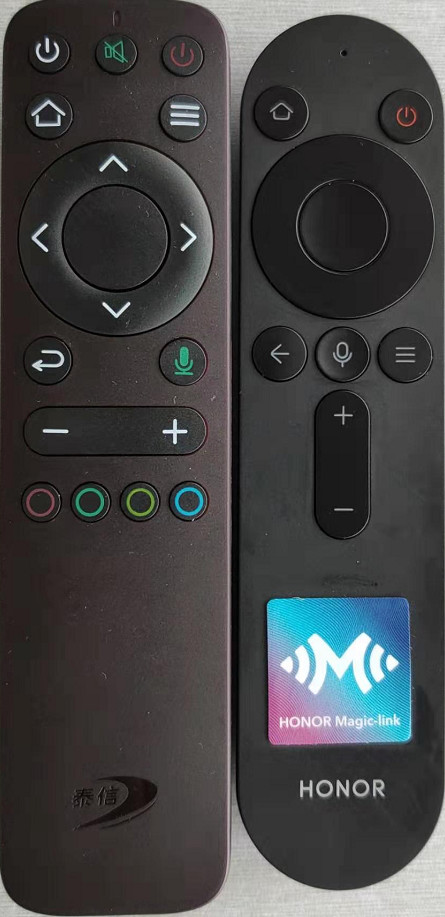 T70的遙控器和智慧屏遙控器差不多大。T70遙控器也是一個學習型紅外線遙控器,整個外殼是深紫紅色半透明,用于透射紅外線,可見其成本是很高的。T70遙控器白色的電源開關鍵用于遙控電視機電源,紅色的用于T70電源遙控,還有4個多功能顏色鍵。藍色的是藍牙/電視切換鍵,按一下進入藍牙音箱,再按一下進入電視模式。