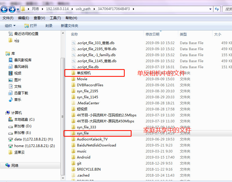 在T70的硬盤中創建單反相機專用的文件夾,再也不用擔心電腦硬盤被擠爆了。硬盤中的音樂、圖片、視頻,都有每個人都有自己的“個人空間”和“家庭共享”空間。家庭共享文件夾是“syn_file”,可以把編輯后的照片放在這里與家人共享。
