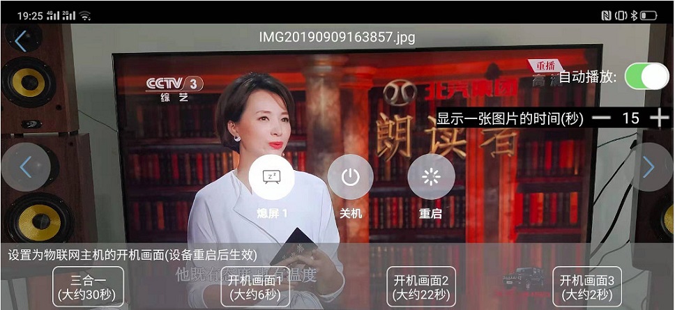 拍攝一張16:9的照片,在照片/本地列表/中選中要作為開機畫面的照片,可以設置為某一個開機畫面,也可以設置為所有的開機畫面。三合一的意思是開機畫面1/2/3使用同一張照片。