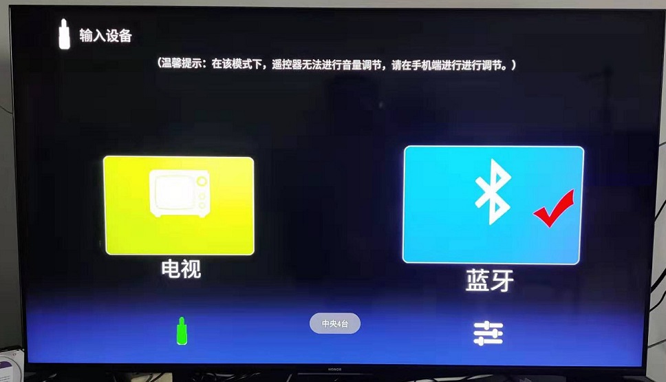 從藍牙音箱模式切換到“中央4臺”,關掉電視也可以操作。