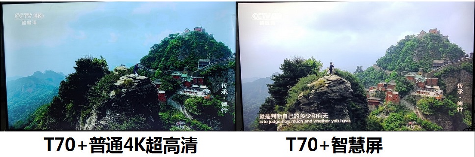 把T70與T6K對調效果一樣。這說明,如果連接普通高清電視,T70和T6K沒什么區別,普通電視與智慧屏也沒啥區別。