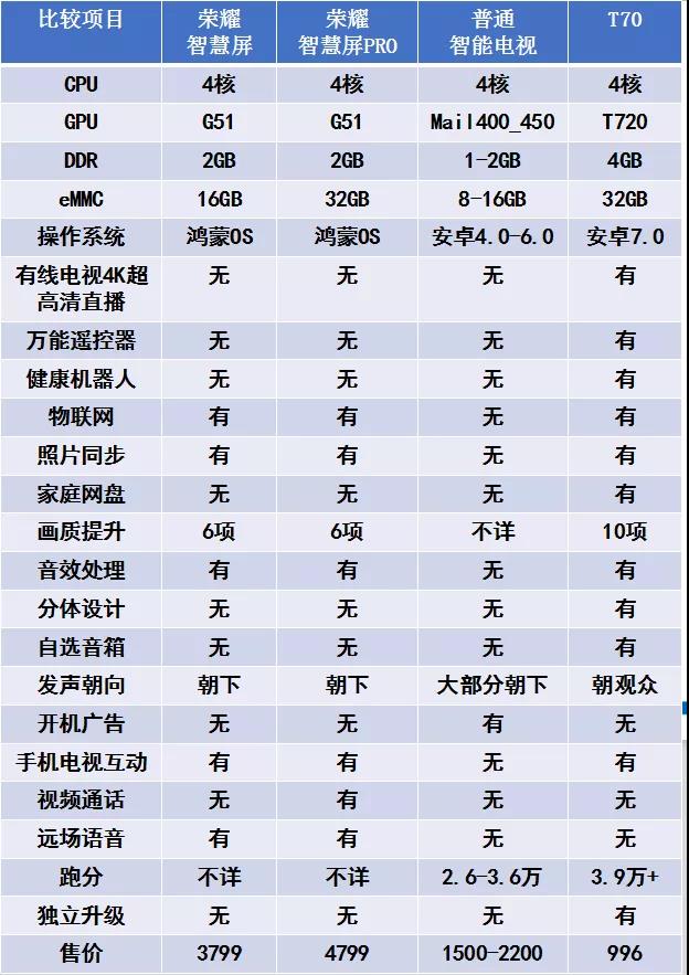 智慧屏、普通4K電視、T70綜合對比