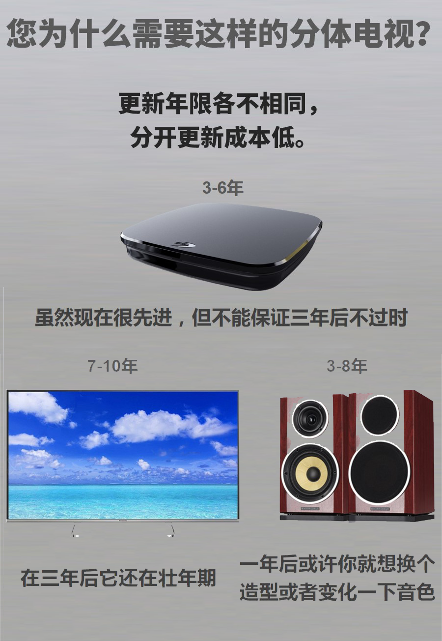 如果從新電視的銷售情況看,一體化電視機是主流。但如果把“機頂盒+電視機”也算作分體電視的話,分體電視是主流,不論新老電視都是顯示器。