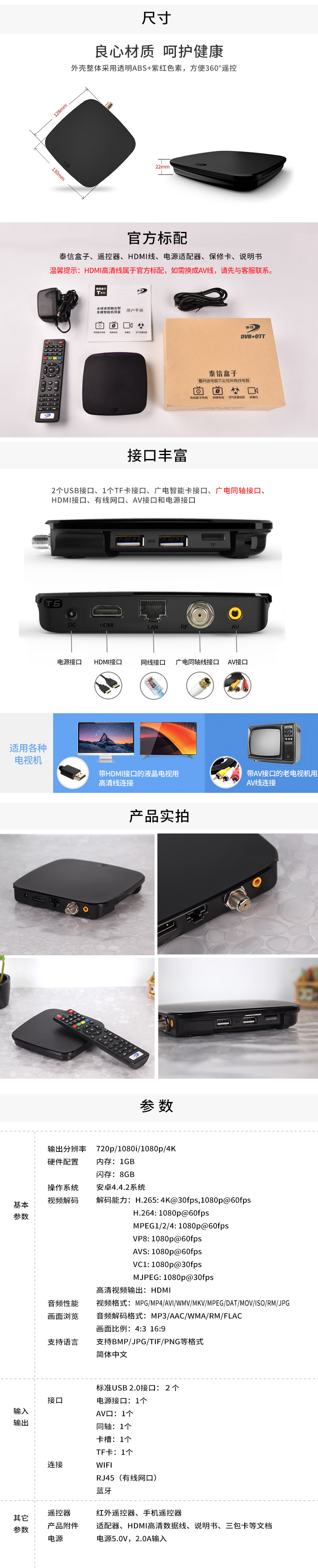 泰信率先引領有線電視進入智能四核時代,是廣電有線電視+網絡電視領軍品牌!T6A搭載自主研發的直播電視操作系統DTVOS,1G內存+8G閃存,支持4k超高清、H.265、3D藍光,畫質更清晰,操控更流暢!綠色節能設計。泰信20年技術積淀,值得信賴!泰信盒子變身智能家居控制中心,體驗全新升級。