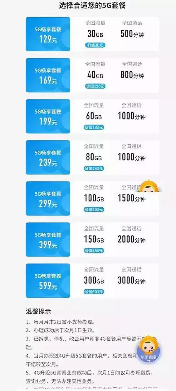 11月1日,三大電信運(yùn)營(yíng)商的5G套餐出爐,價(jià)格出奇一致,電信聯(lián)通套餐價(jià)格一樣: