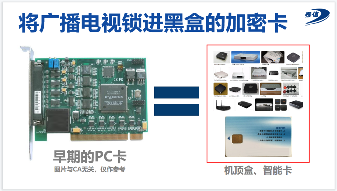 該卡上有一個存儲代碼的FLASH,包含了與智能卡或機頂盒中一樣的加密算法,一旦這個卡外泄,整個CA系統(tǒng)就會被輕易破解。